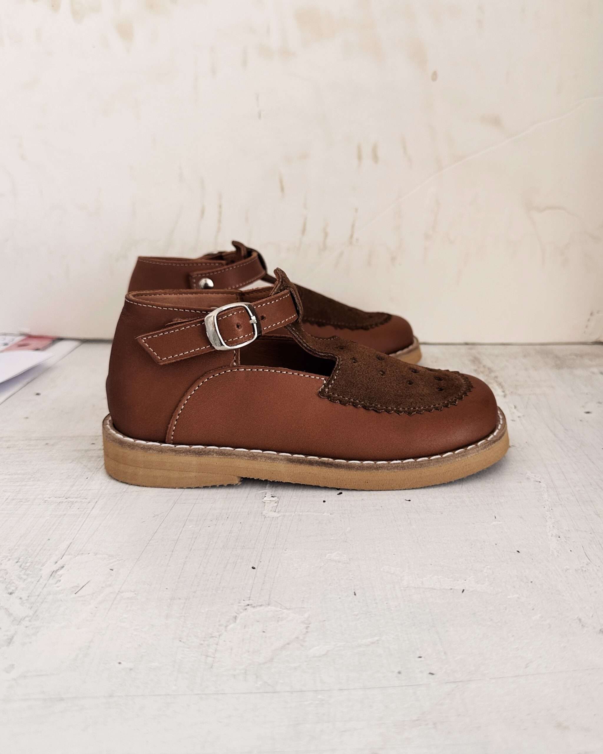 Material: cuero color suela combinado con gamuza